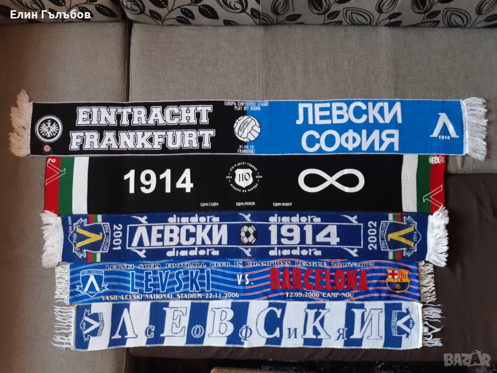 7.Шал на Левски.Шала е от плат и е от историческото първо участие на Бг отбор в груповата фаза на Ш.Л. С две лица и надпис на Бг и латиница.На шала от двете страни има ликовете на Апостола на Свободата Васил Левски и Георги Аспарухов-Гунди,както и логото на Ш.Л.Шала е УНИКАЛЕН.