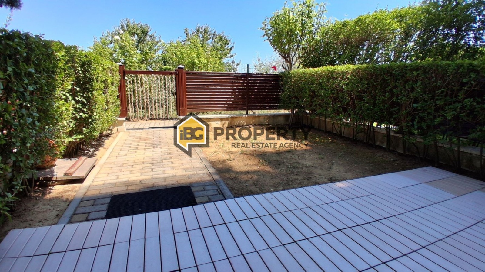Разпределение - красиво зелено собствено дворче с площ от 26,00 кв.м, просторна всекидневна с кухненска зона, килер, баня с тоалетна и стъпала за второ ниво.