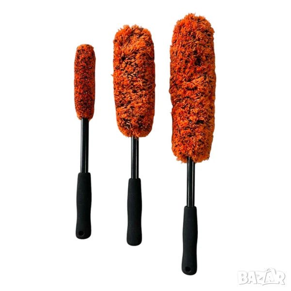 Практичен и удобен комплект от три микрофибърни четки с различни размери, създадени специално за почистване на джанти, калници, прагове, двигателни отсеци и други трудно достъпни зони. Гъвкавият дизайн и меката микрофибърна текстура осигуряват ефективно почистване, без риск от надраскване на повърхностите.