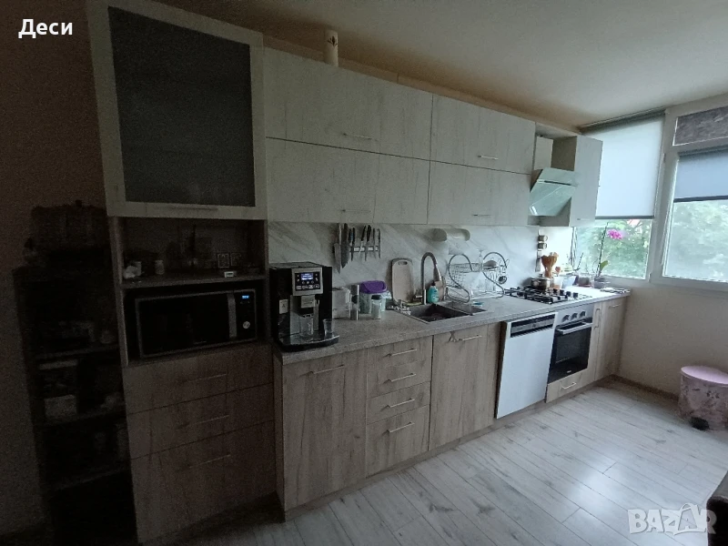 Просторен и светъл тухлен ТРИСТАЕН апартамент, преустроен от двустаен с площ 64 кв.м., разпределени по следния начин: дневна с кухня, килер, две спални, баня и тоалетна в едно помещение разделено с плъзгаща врата - параван на сухо и мокро, голям коридор и открита тераса. Жилището е след основен ремонт с изцяло сменени ВиК и Ел. инсталация, вътрешна изолация на всички външни стени и тавани, навсякъде сменена дограма. Имота се предлага полуобзаведен, ситуиран е в сграда с много добре потдържани общи части, контролиран достъп и голям паркинг. Към него има прилежаща изба 5 кв.. Района е един от най-комуникативните в града с много добре развита инфраструктура. В близост има ясла, детски градини, училища, здравни заведения, супермаркети, автобусни спирки. Имотът е подходящ и за отдаване под наем без допълнителни инвестиции.