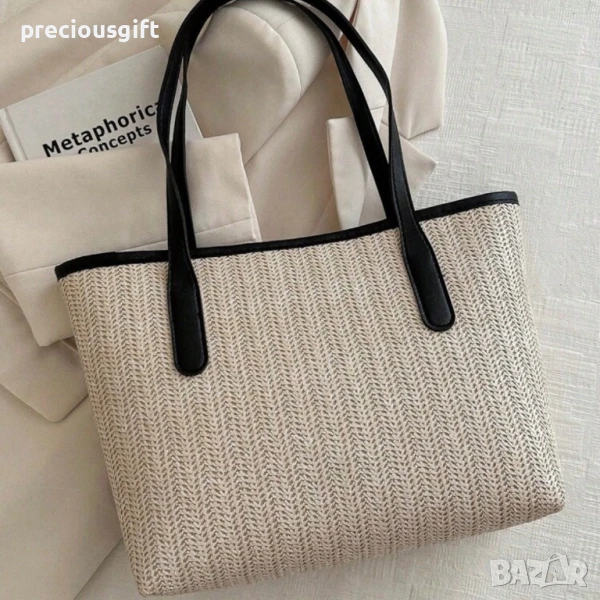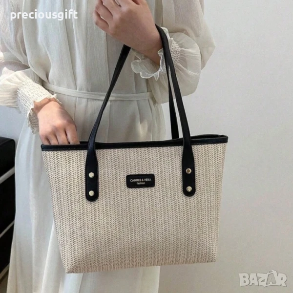 Дамска голяма чанта, налична в бяло, черно и кафяво