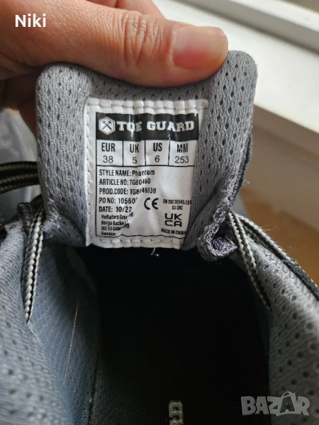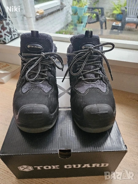 Работни обувки унисекс, използвани са около 2седмици, купени за 40евро, марка toe guard, супер удобни, дължина на стрелката 253мм, размер 38-39, имат лека текстилна забележка от вътрешната страна на обувката, не се забелязва.. За снимки с по-добро качество ми пишете на лично
