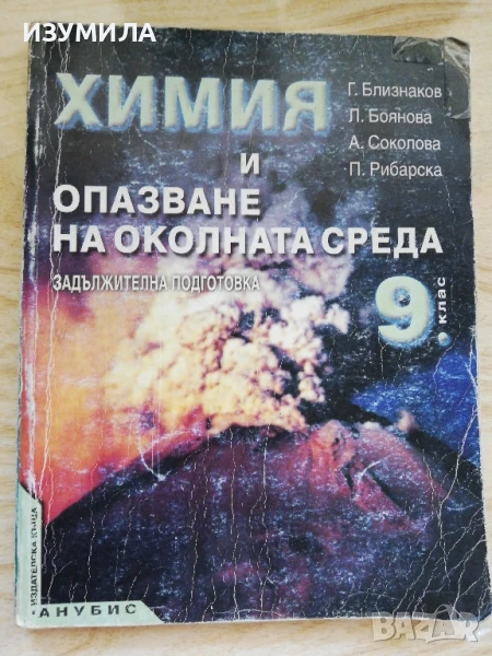 Химия за 9-ти клас, задължителна подготовка, изд. Анубис, 2001, автори : Георги Близнаков, Лиляна Боянова, Антоанета Соколова, Пенка Рибарска - 6 лв.