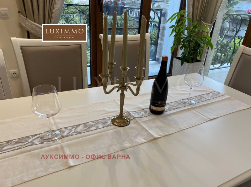 Апартаментът е луксозно обзаведен по дизайнерски проект с поръчкови мебели от масивно дърво. Всеки детайл е внимателно подбран, за да осигури максимално удобство и комфорт.