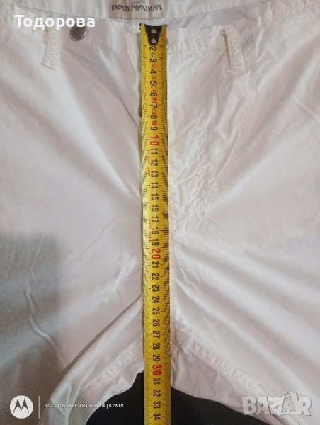 Оригинален мъжки бял панталон на Emporio Armani закупен от Италия. По снимките може да се ориентирате за размера. За град Пловдив може лично предаване или Еконт/Спиди с преглед и тест.