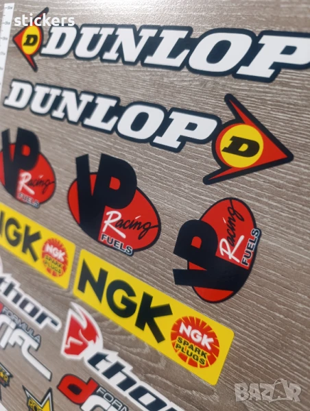 Стикери Dunlop VP NGK Thor Drift Rockstar Honda - 14 бр. - един лист А4. Стикерите са изработени от немско PVC фолио с