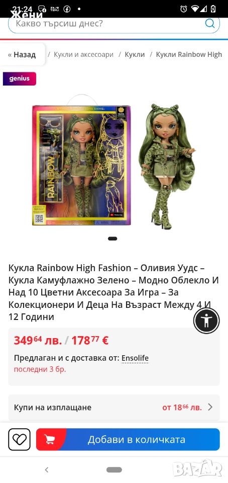 Π°Π±Π΅Π½Π° (ΡΠΎΠΏΠΈΡΠ°Π½Π° ΠΊΠΎΡΠ°) ΡΠ΅Π½Π° - 7-17 Π»Π²/Π±Ρ. ΠΠΎΠ»ΡΠΌΠ°ΡΠ° ΠΊΡΠΊΠ»Π° Π΅ 40 Π»Π². ΠΠΌΠ°ΠΌ ΠΈ ΠΊΠ°ΠΌΡΡΠ»Π°ΠΆΠ½ΠΎ Π·Π΅Π»Π΅Π½Π°ΡΠ° ΠΊΡΠΊΠ»Π° ΠΎΡ ΠΏΠΎΡΠ»Π΅Π΄Π½ΠΈΡ ΡΠΊΡΠΈΠΉΠ½ΡΠΎΡ, Π² ΠΎΡΠ»ΠΈΡΠ½ΠΎ ΡΡΡΡΠΎΡΠ½ΠΈΠ΅, Π½ΠΎ ΡΠ΅Π½Π°ΡΠ° ΠΉ ΡΠ΅ Π΅ ΠΌΠ½ΠΎΠ³ΠΎ ΠΏΠΎ-ΡΠ°Π·Π»ΠΈΡΠ½Π° ΠΎΡ ΠΎΠ±ΡΠ²Π΅Π½ΠΈΡΠ΅, Π·Π°ΡΠΎΡΠΎ Π΅ ΡΡΠ΄ΠΊΠ° ΠΈ Ρ Π½ΡΠΌΠ° Π½Π° ΡΠ΅Π΄ΠΎΠ²Π½Π° ΡΠ΅Π½Π° Π½ΠΈΠΊΡΠ΄Π΅. ΠΡΠΈ ΠΈΠ½ΡΠ΅ΡΠ΅Ρ, ΡΠ΅ Π½Π°ΠΏΡΠ°Π²Ρ ΡΠ½ΠΈΠΌΠΊΠΈ ΠΈ ΠΏΡΠΈΠ΅ΠΌΠ°ΠΌ ΠΎΡΠ΅ΡΡΠΈ.