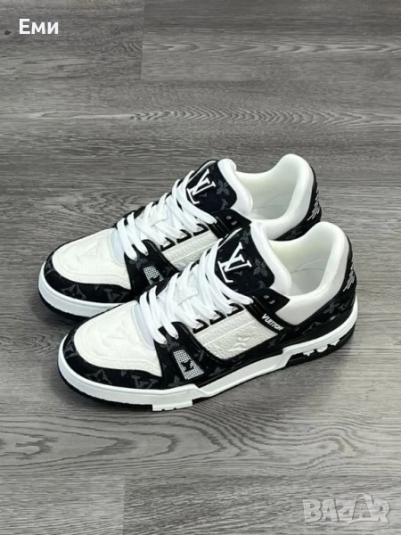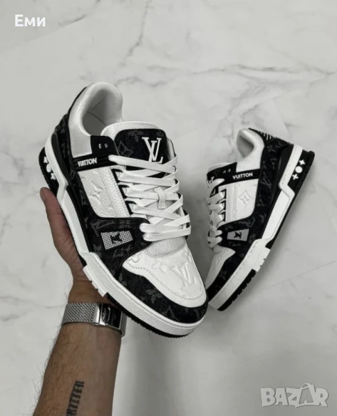 Маркови мъжки спортни обувки, маратонки, сникърси Louis Vuitton Най-висок клас на изпълнение С противопрахова торбичка, кутия, сертификат Размери 40,41,42,43,44 Снимките са реални. Бърза доставка с Еконт или Спиди с преглед и тест преди заплащане. При интерес разгледайте и другите ни обяви P.S:Пратки напуснали офиса на Еконт не се заменят, не възтановяваме пари!!