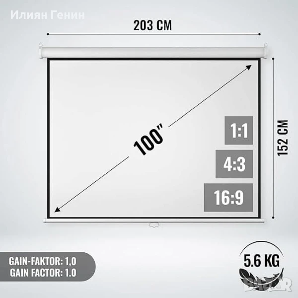 1 x Екран за проектор (BELE02), в размер: 203 × 152 cm