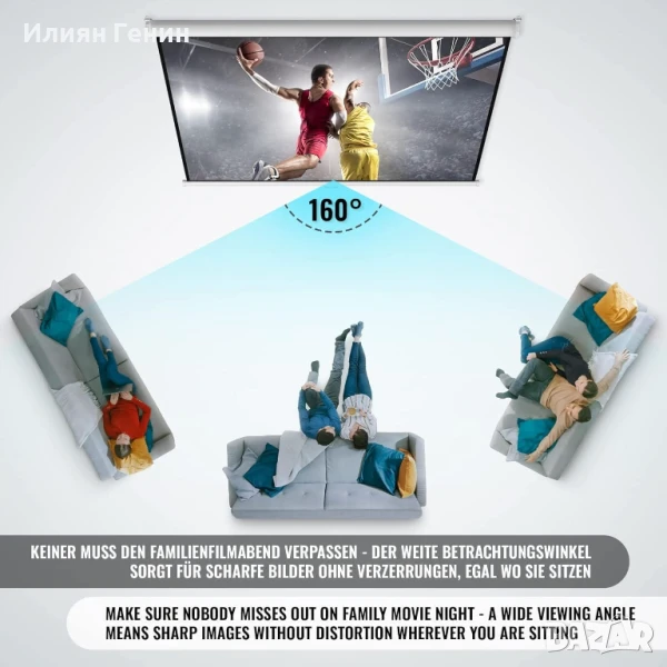 ⭐⭐⭐⭐⭐ ШИРОК ЪГЪЛ: Идеален изглед - Нашият киноекран предлага широк зрителен ъгъл от 160 градуса за оптимално използване в големи стаи и разнообразни позиции за сядане.