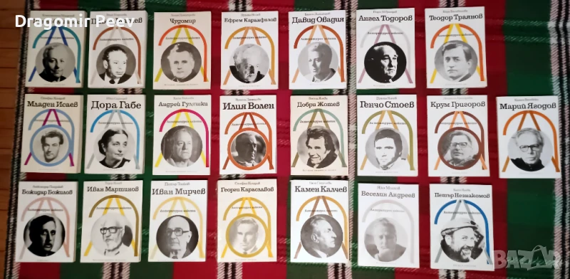7. Продавам: Комплект /пълен/ „Литературни анкети“ – 22 книжкиОписание:Пълен комплект от рядката поредица с литературни интервюта на известни български писатели, която включва имена като Чудомир цена – 50 лв.; Дора Габе цена – 150 лв.; Иван Мирчев цена – 50 лв.; Божидар Божилов цена – 60 лв.; Павел Матев цена – 30 лв.; Младен Исаев цена – 20 лв.; Петър Незнакомов цена – 20