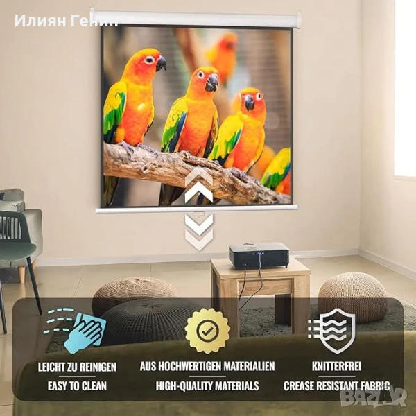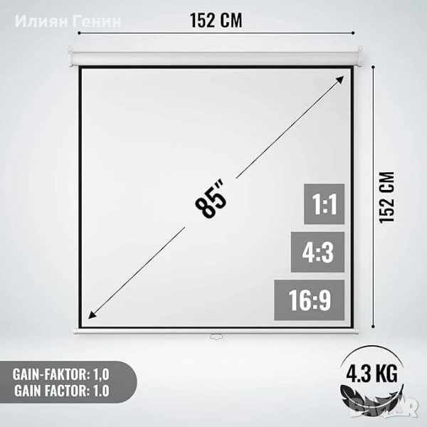 1 x Екран за проектор (BELE04) с размери 152 x 152 cm