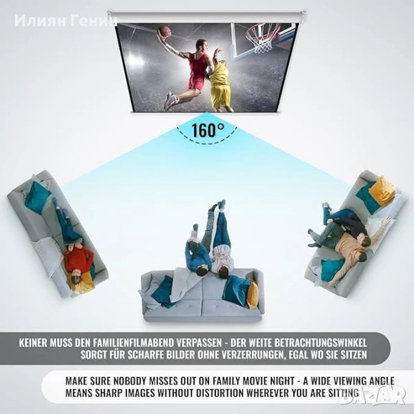 ⭐⭐⭐⭐⭐ ШИРОК ЪГЪЛ: Идеален изглед - Нашият киноекран предлага широк зрителен ъгъл от 160 градуса за оптимално използване в големи стаи и разнообразни позиции за сядане.