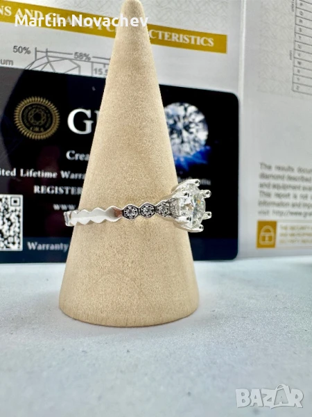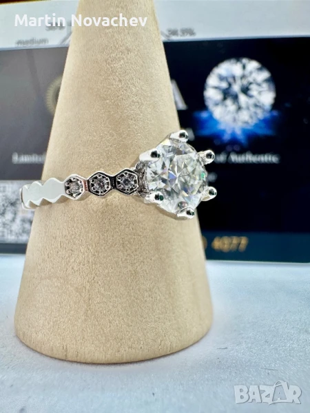 Сребърен пръстен с мойсанит (Диамант) 1 карат → Обява 51370699