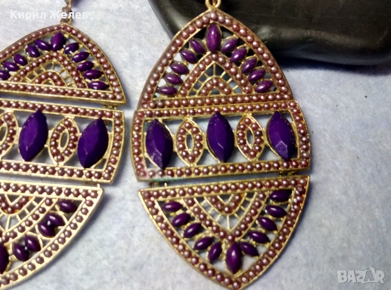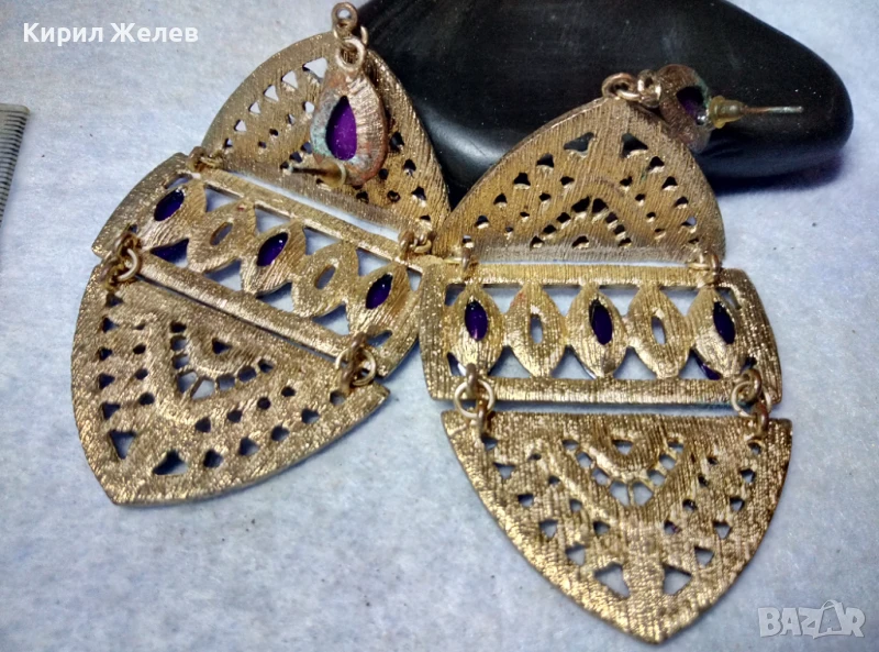 КРАСИВИ ГОЛЕМИ ЗЛАТИСТИ ЕТНО АРТ СТИЛ АЖУРНИ МЕДНИ ОБЕЦИ 10153