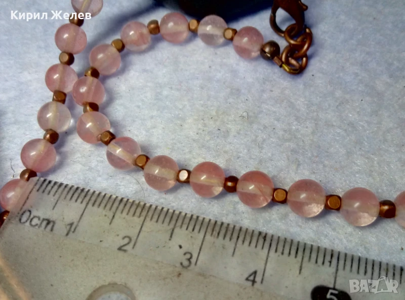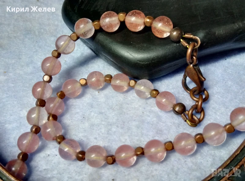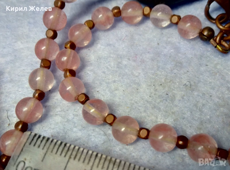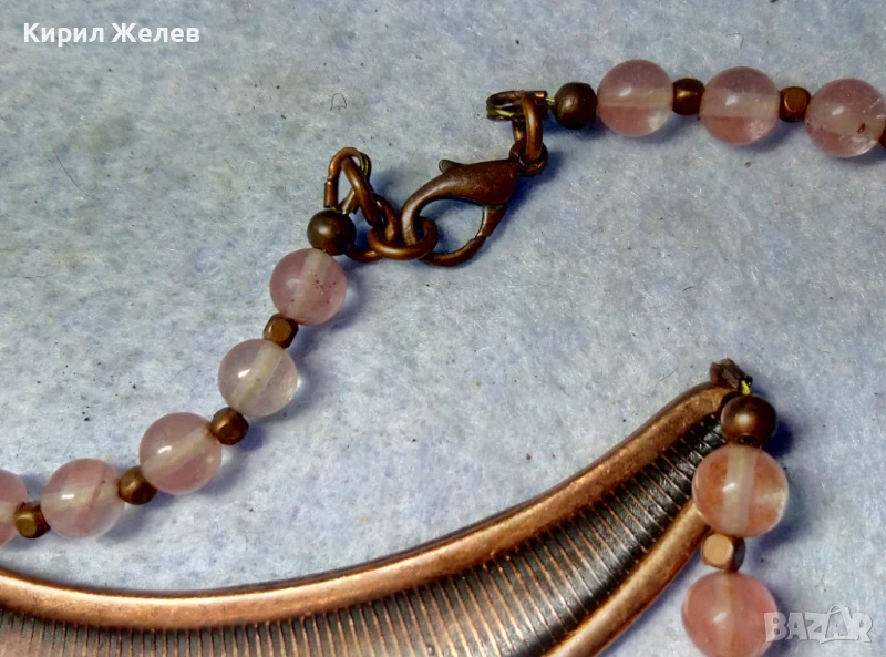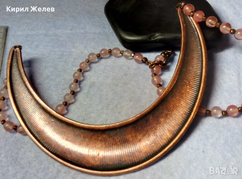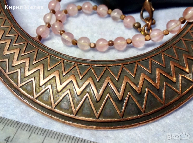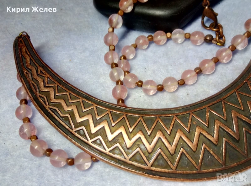 РАЗКОШНА ОРНАМЕНТИРАНА МЕДНА ОГЪРЛИЦА с РОЗОВ КВАРЦ РЕТРО АРТ БИЖУ 41793