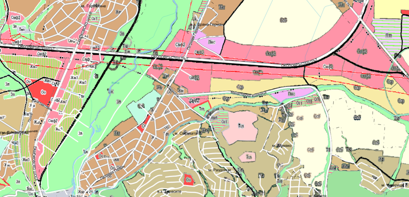 По ОГП попада в зона за промишлено строителство Пмс, с показатели на застрояване 50% плътност, кинт 1.5%. Отреждане - за чисто производство, складове, обслужващи сгради, работилници .