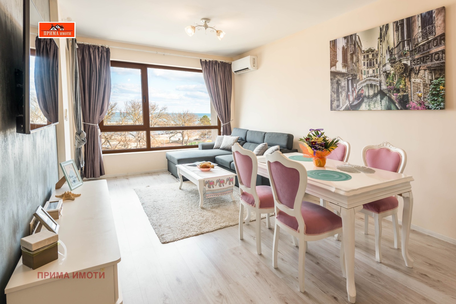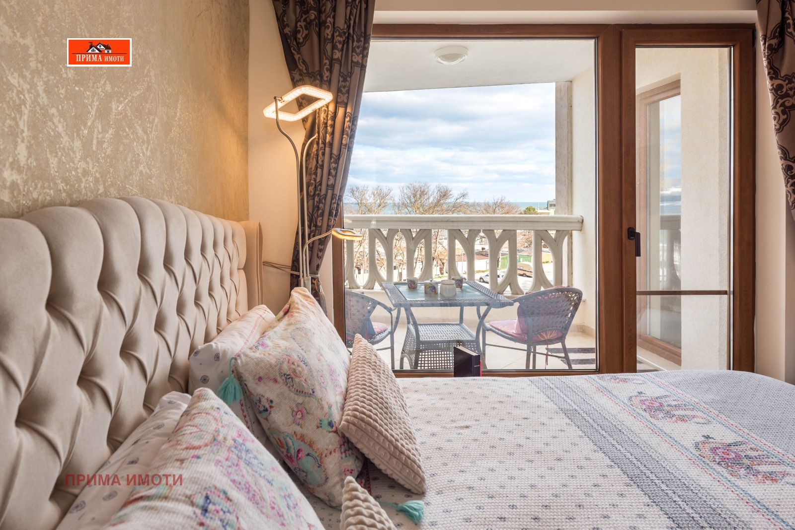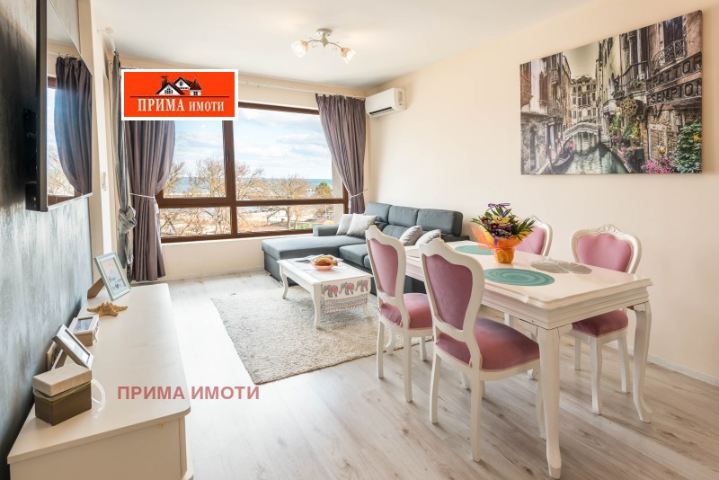 ФРОНТАЛНА НЕСКРИЕВАЕМА МОРСКА ПАНОРАМА! ПЪРВА ЛИНИЯ ДО МОРЕТО! ПРИМА ИМОТИ ОТДАВА ПОД НАЕМ ЛУКСОЗЕН АПАРТАМЕНТ, който се намира в затворен комплекс-Varna South Bay Beach Residence с прекрасна морска панорама на метри от плажната ивица. Разполага също със спалня, всекидневна с разтегателен диван+напълно оборудвана кухня - фурна с котлони, хладилник, пералня със сушилня, два смарт телевизора. Имота е обзаведен и оборудван с всичко необходимо за едно домакинство. Затворен комплекс с басейни, сладкарница, магазини.Свободно паркиране.