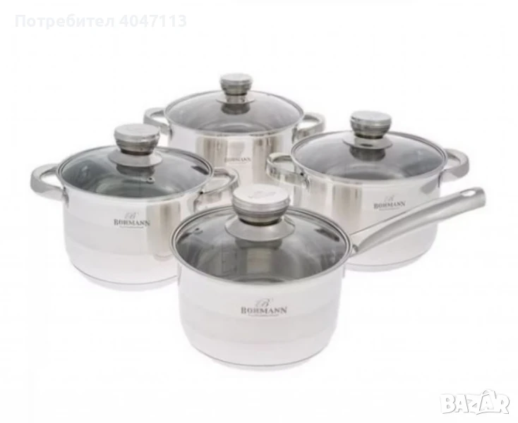 Комплект тенджери Bohmann 16см/18см/20см/22см, Неръжд.стомана, снимка 1 - Съдове за готвене - 51372113 Комплект тенджери Bohmann 16см/18см/20см/22см, Неръжд.стомана, снимка 2 - Съдове за готвене - 51372113 Комплект тенджери Bohmann 16см/18см/20см/22см, Неръжд.стомана, снимка 3 - Съдове за готвене - 51372113 1/3