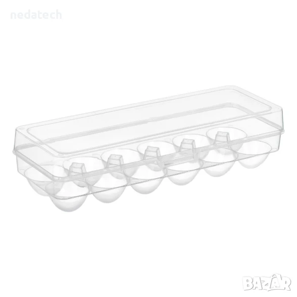 Прозрачна пластмасова кутия за яйца с 0% BPA и капак, който се затваря плътно. Използвайте я за безопасно съхранение на яйца в шкафа и хладилника. Подходяща е за замразяване.