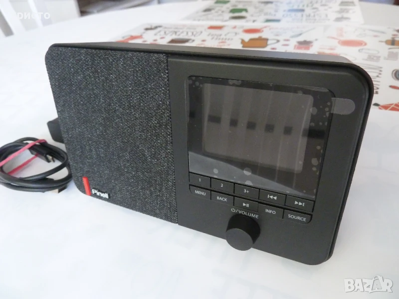 Внос от Норвегия.Качествено компактно портативно радио на норвежката марка Pinell.Има Bluetooth,FM,DAB+,интернет радио.Работи на ток и на батерии.Цената е крайна.Без бартери.