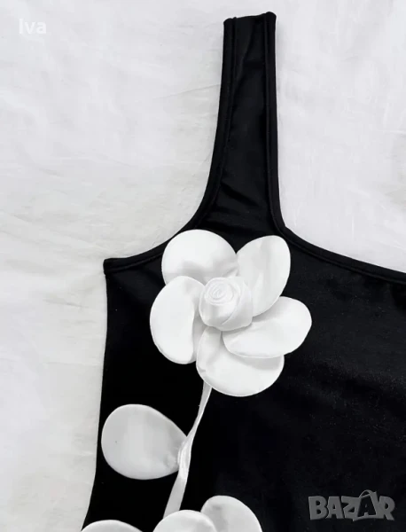 Черна рокля с 3D цветя S и М размер– елегантност и романтика в едно → Обява 51372796