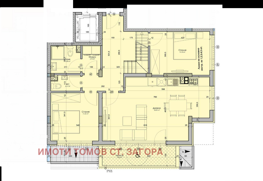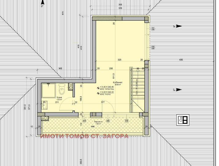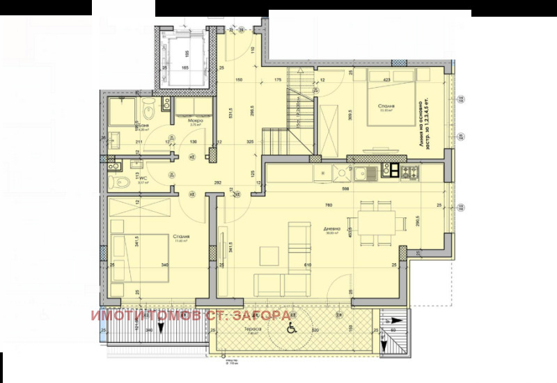 Имоти Томов Стара Загора представя на Вашето внимание, БЕЗ КОМИСИОННА ОТ КУПУВАЧА, мезонет с три спални, с площ от 183,81 кв.м. в квартал Железник-запад. Имотът е разположен на четвърти етаж в новострояща се четириетажна жилищна сграда и се състои от: