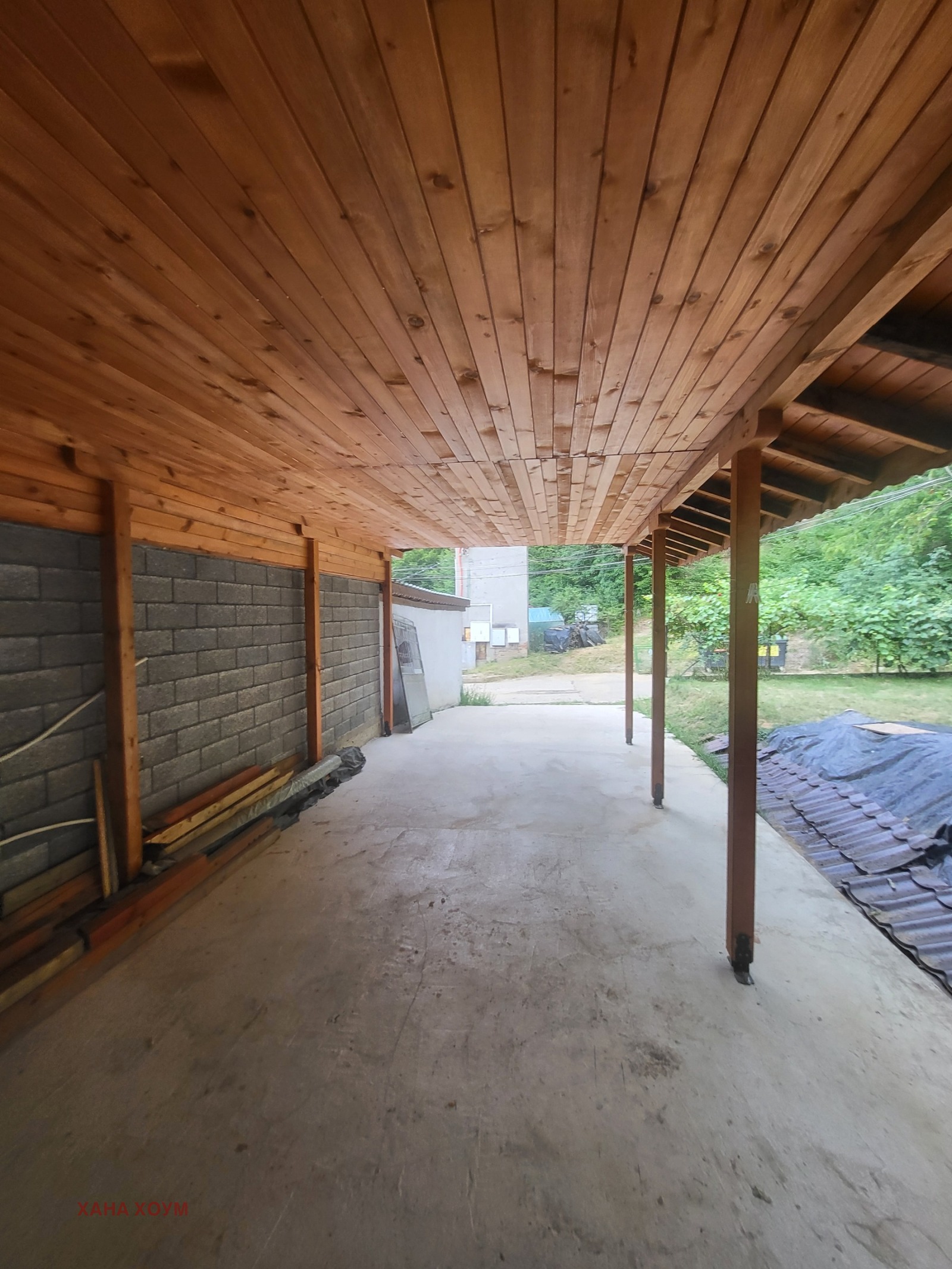 Има барбекю с камина и покрит навес за паркиране на два автомобила, като входът към него е директно от улицата.