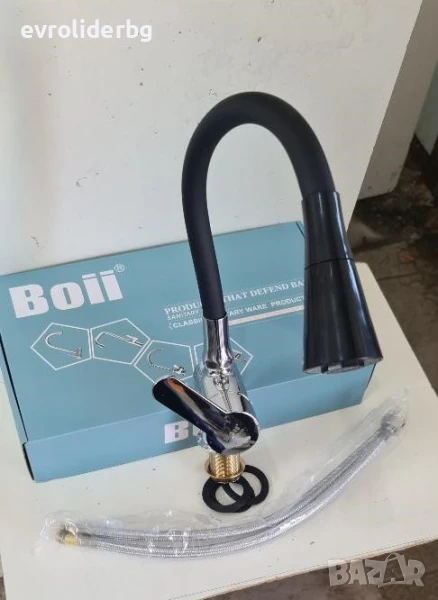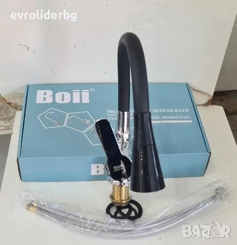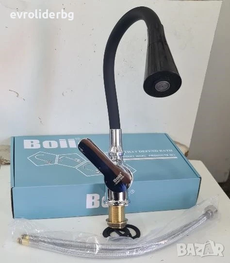 СУПЕР ПРОМОЦИЯ!!! Смесител Едноръкохватков Стоящ с Черна Гъвкава Лебедка. → Обява 51374422