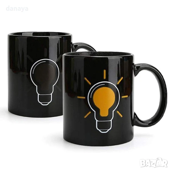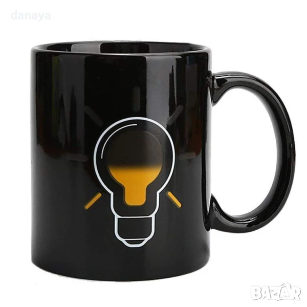 Черна магическа чаша със скрито изображение, което се появява, когато в чашата се налее гореща напитка. На пръв поглед това е една обикновена черна порцеланова чаша с изобразена крушка в лицевата й част. Когато напълните чашата с гореща напитка, крушката светва. Още една нестандартна и забавна идея за подарък.