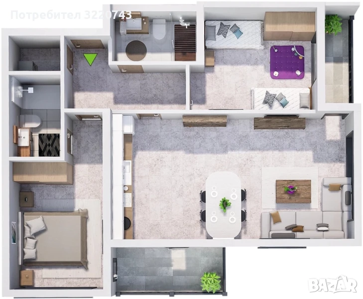 Тристайни апартаменти: от 106,57 кв.м до 115,70 кв.м (обща застроена площ)