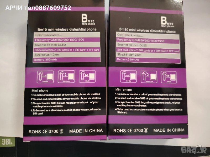 Мини мобилен телефон Bm10, с възможност за синхронизиране към друг телефон