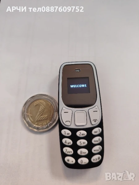 Малък мобилен телефон мини Bm10, 2 сим карти, bluetooth свързване, 7 х 3см Micro GSM MINI