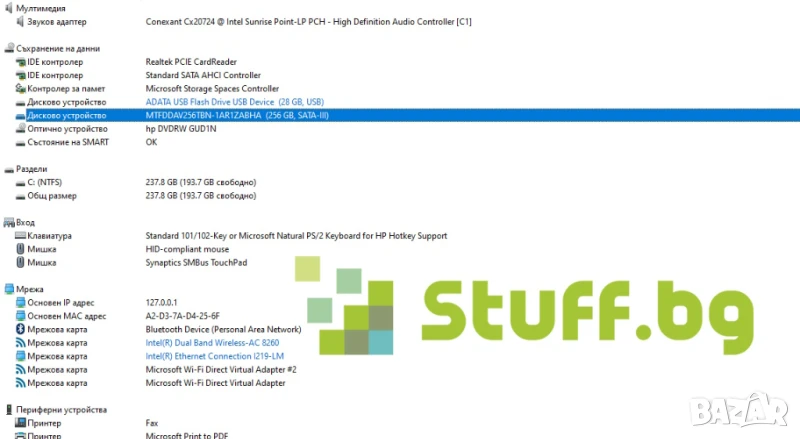 Друго: 1 x SD card reader, 1 x DVD-RW drive,