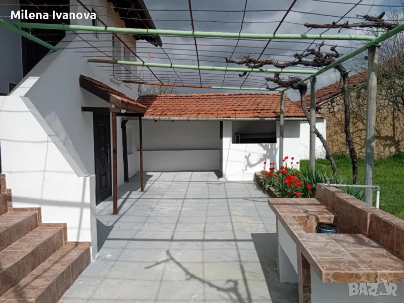 Двуетажна къща, напълно реновирана, с нови подови настилки от гранитогрес и ламинат, както и изцяло сменена дограма.
