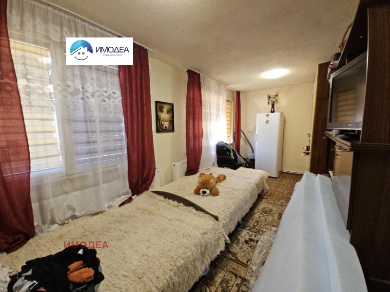 ИМОДЕА представя на Вашето внимание триетажна къща в град Трявна. Имотът, който Ви предлагаме е с обща площ от 240 кв.м. разпределени по следния ред и начин: на приземен етаж има голямо избено помещение, подходящо за складиране на дърва; първи етаж- всекидневна с кухненска част, баня и тоалетна, коридор, вътрешно избено помещение; втори етаж-всекидневна с кухненска част, две спални, баня и тоалетна, тераса, коридор; трети етаж е недовършен на тухла и плоча, като има прекарани Ел. и ВиК инсталации за обособяването на имота по вкус на новите му собственици, както и тераса към него. Между етажите се стига с масивно вътрешно изградено стълбище. Отоплението на къщата е решено чрез голяма камина на твърдо гориво с изградена инсталация, която включва нови радиатори, медни тръби. В допълнение са поставени нови климатици за допълнително подсигуряване на отоплението през зимния период. Дворът е с площ от 300 кв.м. и е добре аранжиран и поддържан с цветя и плодородни дръвчета. Към имота има две допълнителни постройки и навес. Достъпа целогодишно е по асфалтов път. Подменена е дограмата с ПВЦ, като в някои от стаите е с дървена. Покривът е здрав и в отлично състояние