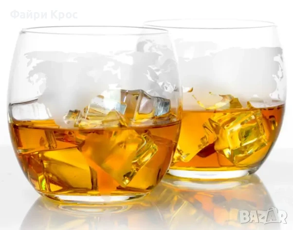 Комплекта съдържа още и 4 стъклени чаши в същия стил, дървена поставка, диспенсър, стъклена тапа и дървена кутия с 9 броя камъни за охлаждане.