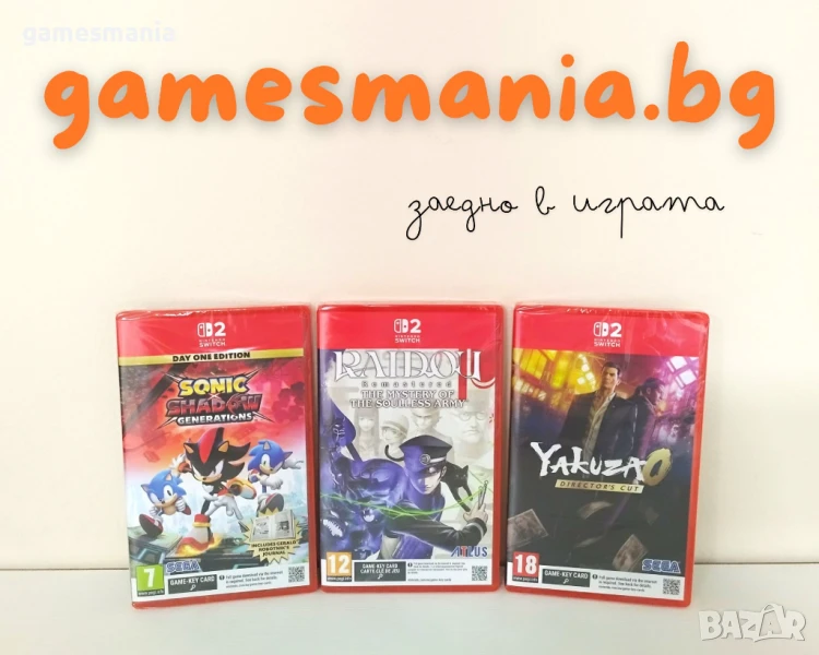 GAMES MANIA предлага всички топ заглавия за Playstation 5, Playstation 4 и Nintendo Switch/ Switch 2. Всички игри с актуални цени може да видите на сайта ни -