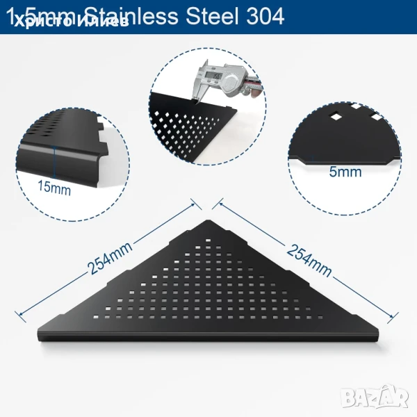 Високо качество: Ъгловата полица за душ е изработена от неръждаема стомана 304, устойчива на ръжда, надраскване, корозия, издръжлива и лесна за почистване, подходяща за употреба във влажни бани.