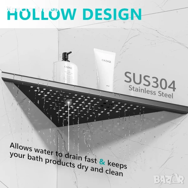 Здрав и издръжлив: Рафтът за душ от неръждаема стомана е с куха конструкция с висока якост, която не само издържа до 10 кг, но също така се оттича и съхне бързо на въздух, което го прави подходящо решение за съхранение и организация на бани и кухни.