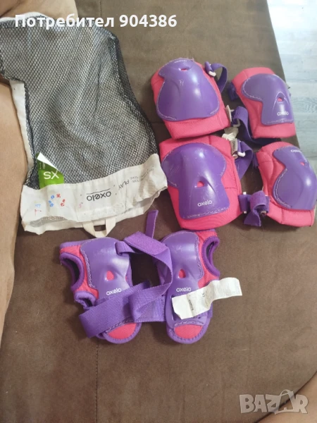 Продавам комплект протектори на oxelo (наколенки,лакътници и протектори за ръцете) цвят лилав и розов.С нормални следи от употреба .Размер xs .