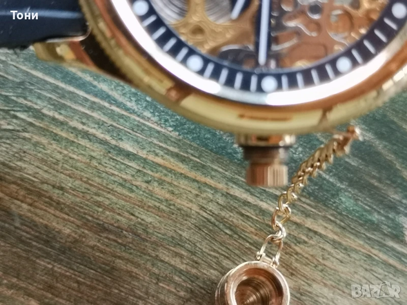 Чисто нов. Механичен навиващ се. Работи пррфектно. Оригоналната каишки се скъса веднага. Тази е от друг часовник използвана. Без бартери.