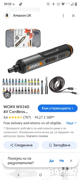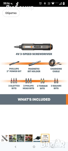 Worx WX240L 4V 3-скоростен акумулаторен винтоверт