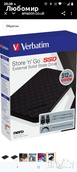 Преносим SSD Verbatim Store 'n' Go - 512 GB - Черен - Външен SSD - USB 3.0 SSD - Външен SSD - за Windows и Mac OS X - Преносимо устройство - USB-C - Външна флаш памет.БЪРЗ И СЪВМЕСТИМ: Комбинираният конектор с USB-C прави SSD устройството съвместимо и с най-новите устройства - висока скорост на трансфер благодарение на USB 3.0 технологията