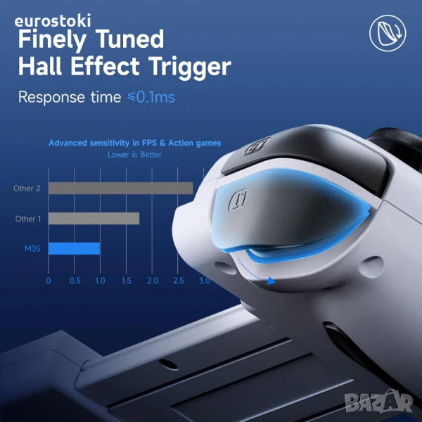 С тригери с ефект на Хол и време за реакция от само 0,1 ms, този геймърски контролер за iPhone 15 предлага прецизни и бързи реакции. Турбо функцията и програмируемите бутони (A/B/X/Y/LB/RB/LT/RT/L3/R3/D-pad) добавят конкурентно предимство, което прави този геймърски контролер за iPhone задължителен за динамични и бързи игри.