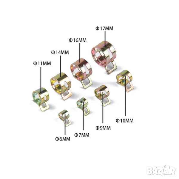 Пружинните скоби са проектирани така, че да разпределят равномерно налягането. Използването им се препоръчва, когато маркучът е подложен на резки температурни промени, което може да доведе до разширяване и свиване на използваните материали. Пружинните скоби са приложими за ниско налягане, за задържане и затягане на маркучи и тръби, тъй като тяхното силно захващане е в състояние да устои на напрежението, да намали движението и да омекоти вибрациите.