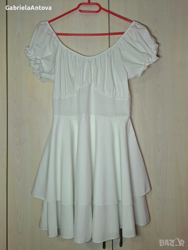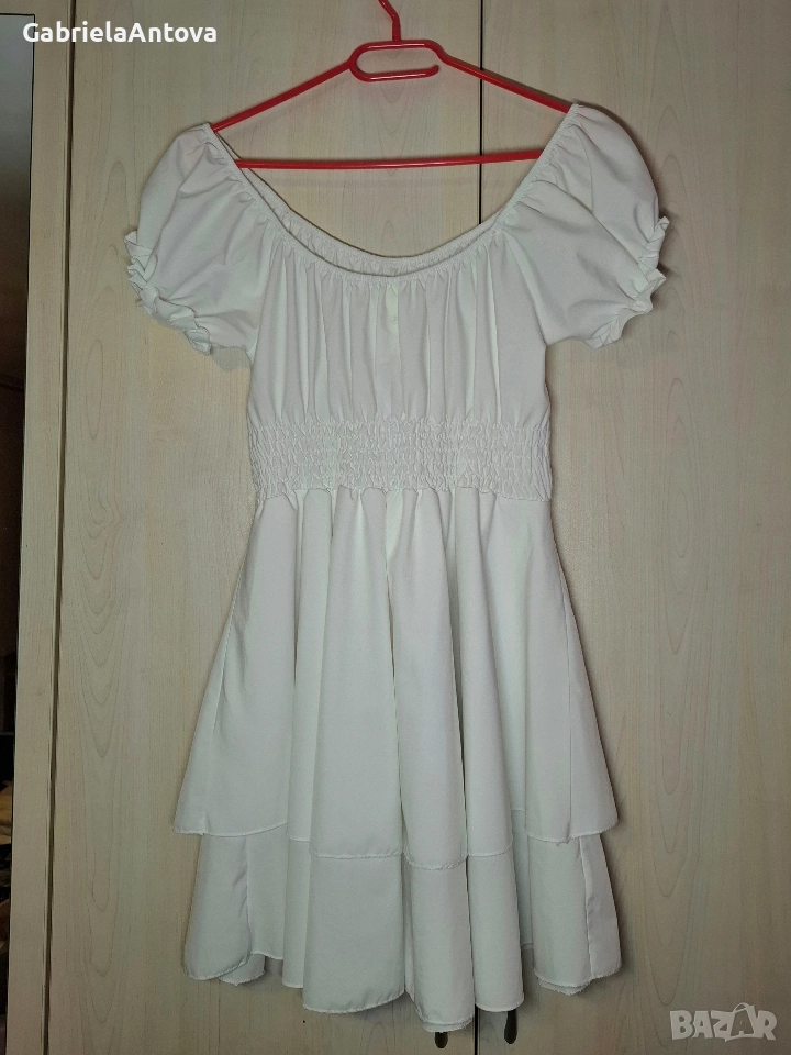 Лятна рокля в бяло. Идеална за горещите летни дни и вечери. Свежа и удобна, подходяща за различни поводи. M-L размер Дължината й е 80 см
