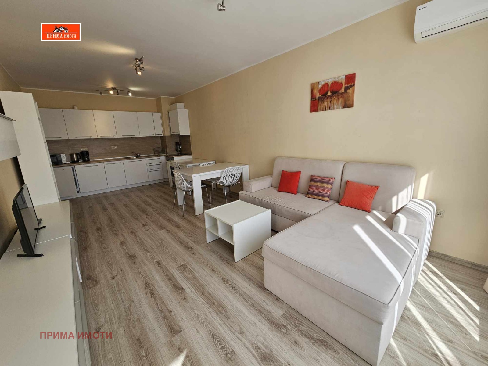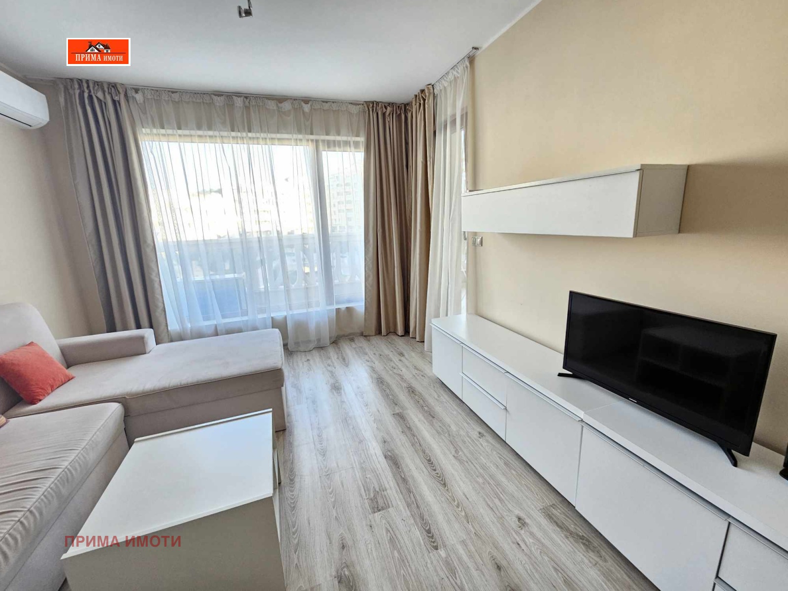ПРИМА ИМОТИ ОТДАВА ПОД НАЕМ НАПЪЛНО ОБЗАВЕДЕН АПАРТАМЕНТ, който се намира в затворен комплекс-Varna South Bay Beach Residence на метри от плажната ивица. Разполага също със спалня, всекидневна с диван+напълно оборудвана кухня - фурна с котлони, хладилник, пералня, климатик , просторна тераса с гледка към басейна,. Имота е обзаведен и оборудван с всичко необходимо за едно домакинство Пред комплекса има безплатен паркинг, а на 50м има автобусна спирка, на която спират автобуси, които минават през квартала и водят до центъра на града. Освен хранителен магазин на няколко крачки(в съседната сграда на партер) има и Lidl на 900 метра от комплекса. Наемната цена е 600 eвро/месец с включени разходи за общи части и асансьор, телевизия и интернет, като в деня на настаняването се дължи депозит в размер на два месечни наема. Без домашни любимци.