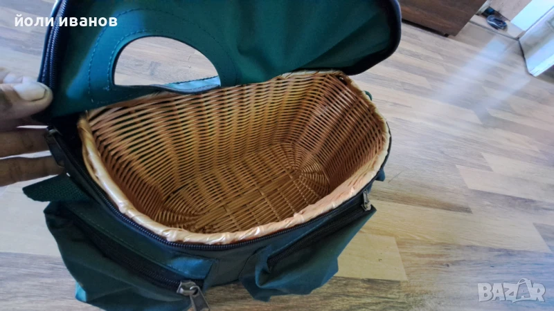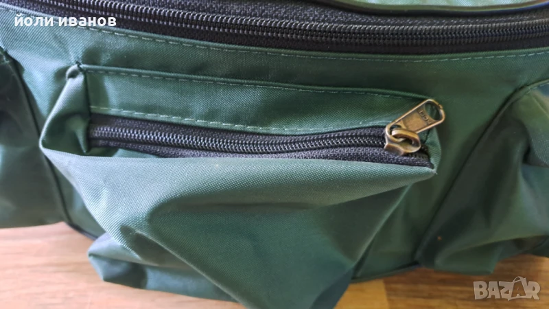 Чанта-живарник за съхраняване на жива риба и пренасянето и на разстояние,коючето се изважда при нужда,материята на чантата е водонепропусклива,има два малки отвора на дъното,за изцеждане на водата,ново неизползвано,има три челни джоба с ципове