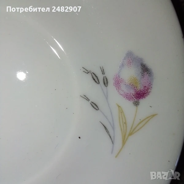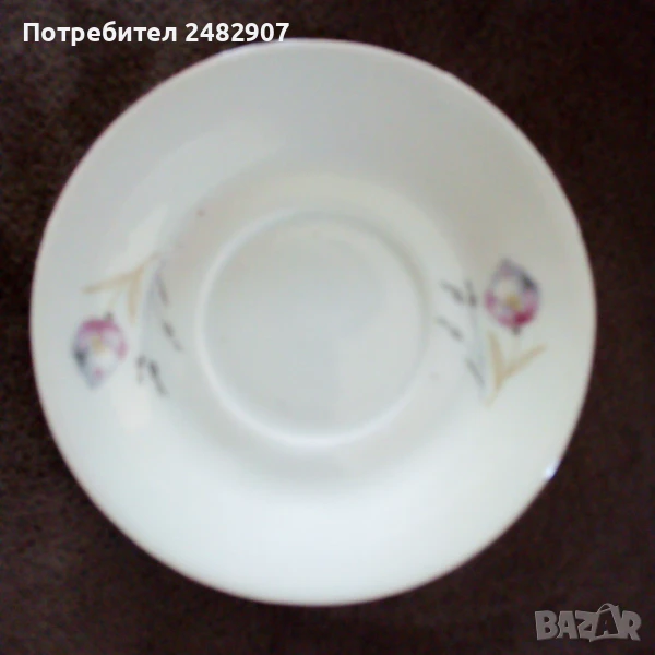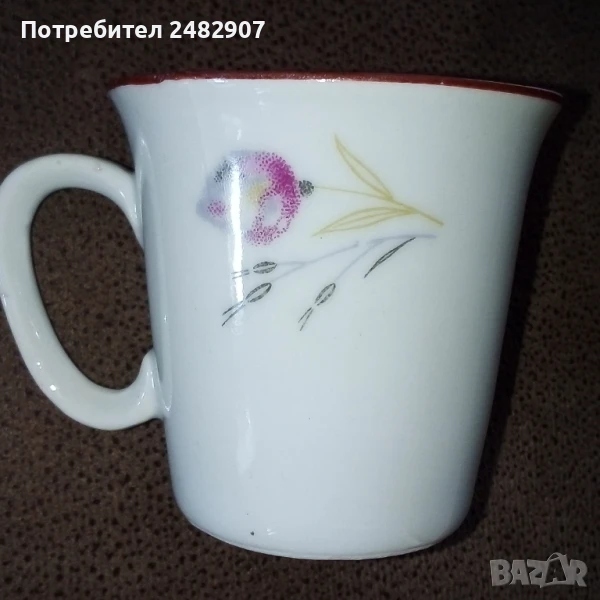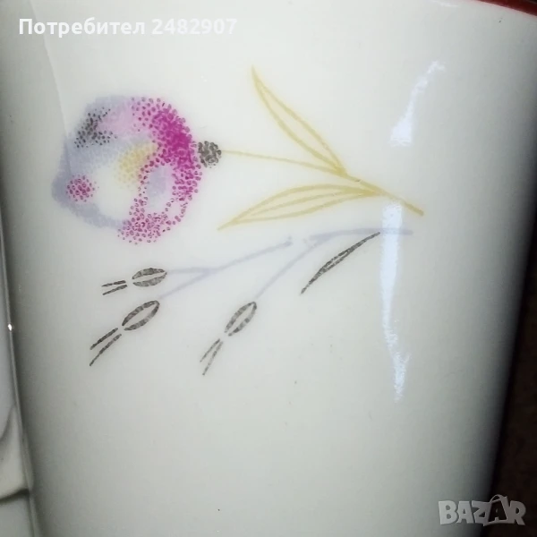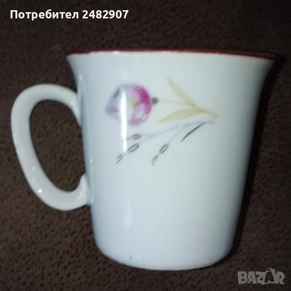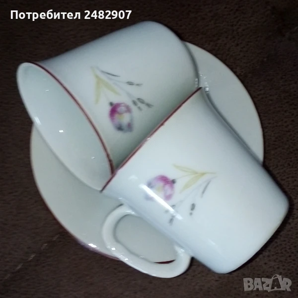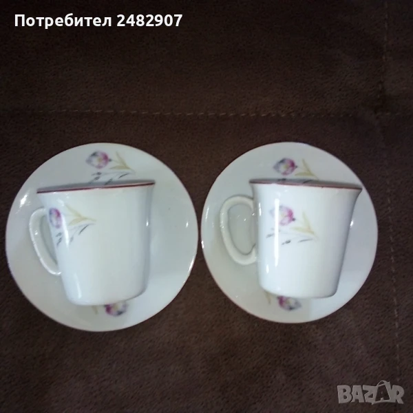 Комплект от 2 броя порцеланови ретро чашки за кафе с чинийки. Диаметър на чинийките - 11,5 см, диаметър на чашките в долната част - 4 см, диаметър в горната част - 6,5 см, височина - 6,5 см, вместимост - 100 ml. Чисто нови, не са използвани. Цената е за комплекта.